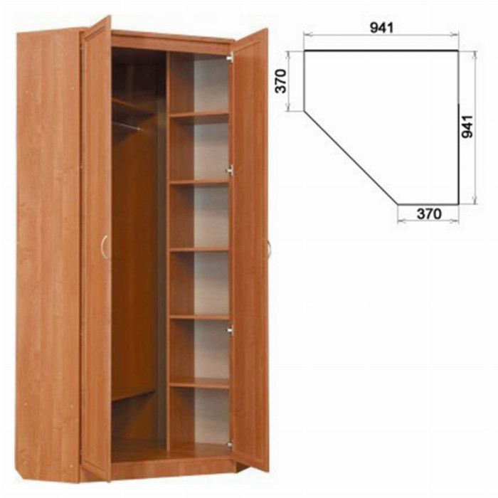 Двухдверный угловой распашной шкаф Мерлен 401 поможет удобно и бережно хранить множество предметов гардероба. Изделие будет гармонично сочетаться с современным интерьером.