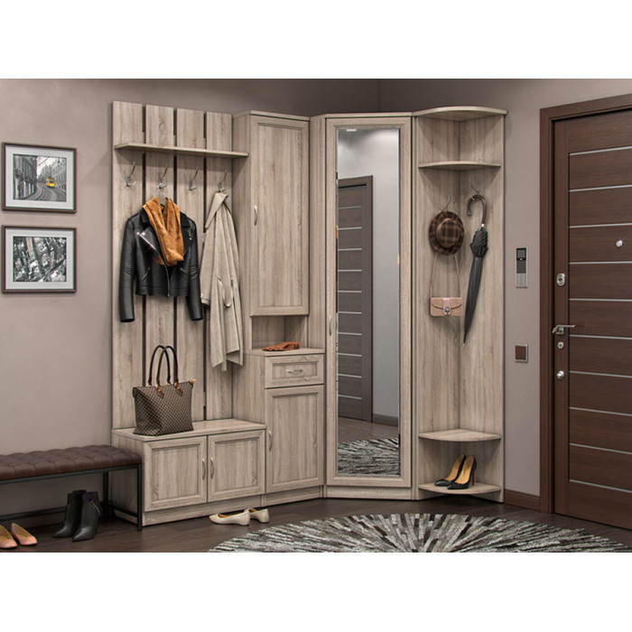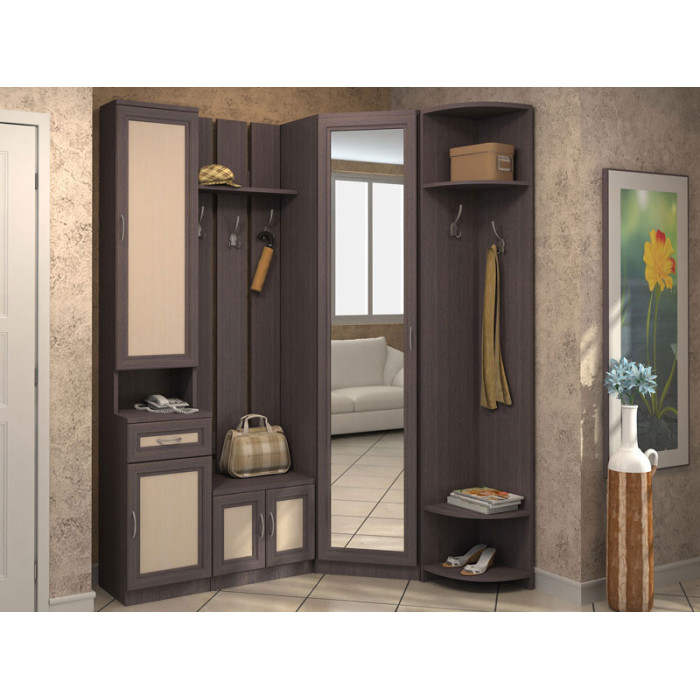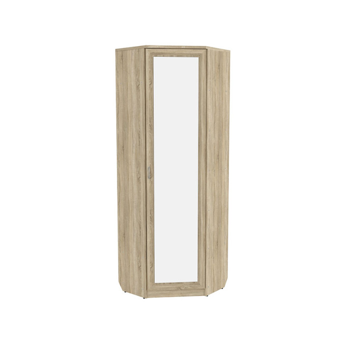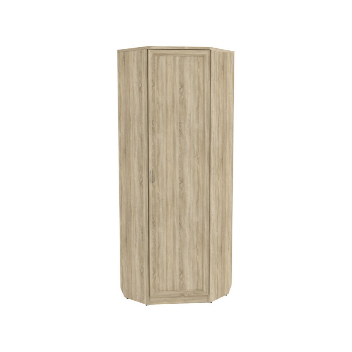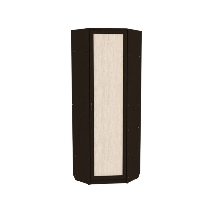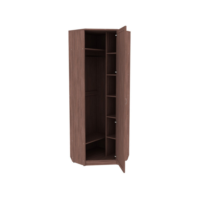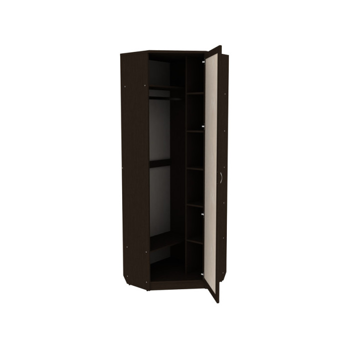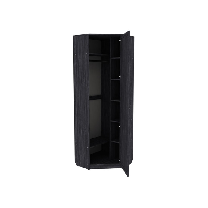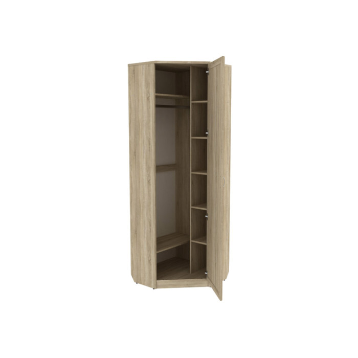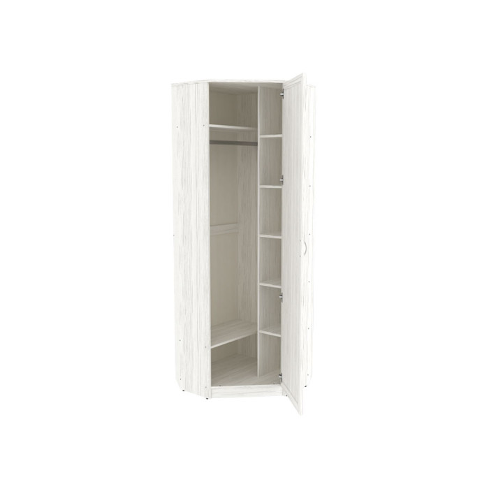 Угловой распашной шкаф Мерлен поможет удобно и бережно хранить множество предметов гардероба. Внутреннее наполнение представлено эргономичной штангой для вешалок и секцией с полочками. Изделие будет гармонично сочетаться с современным интерьером.