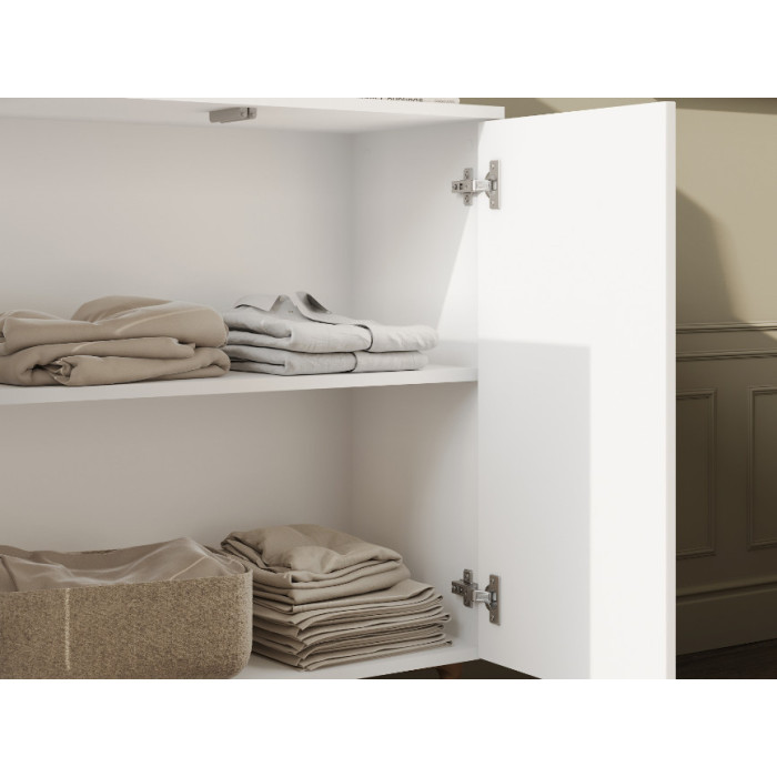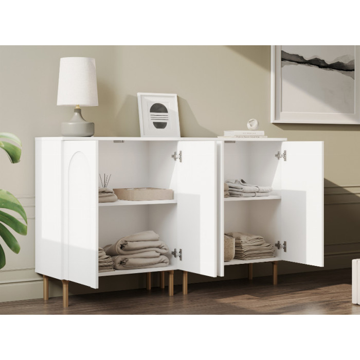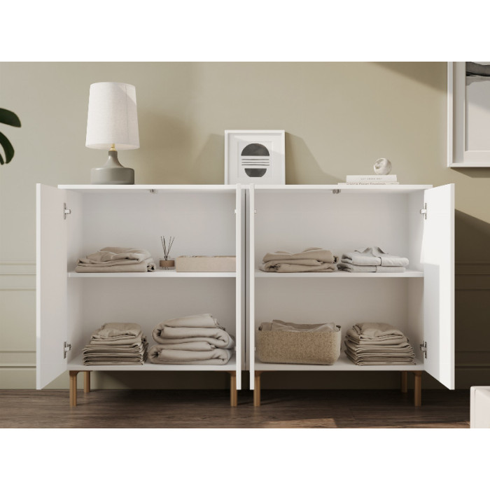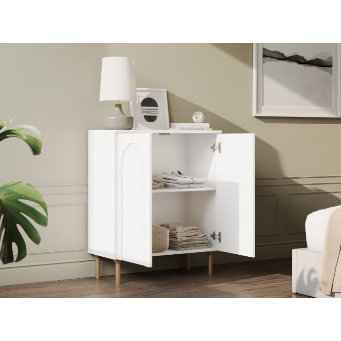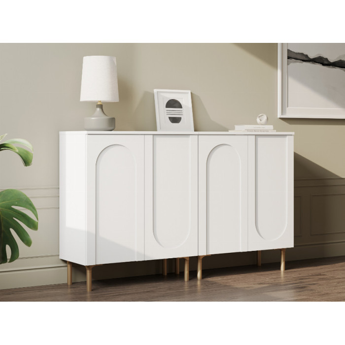 Набор комодов Ванесса Дабл украсит интерьер и расширит систему хранения. Элегантный дизайн фасадов с плавными линиями фрезеровки и аккуратные ножки придают мебели утонченность. Удобная полка делит внутреннее пространство пополам, позволяя разместить разные категории вещей. С помощью механизма «push-to-open» дверцы открываются легким нажатием, а петли с доводчиками обеспечивают комфортную эксплуатацию.
