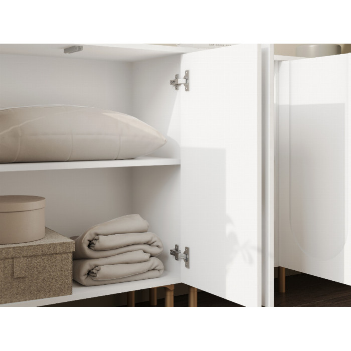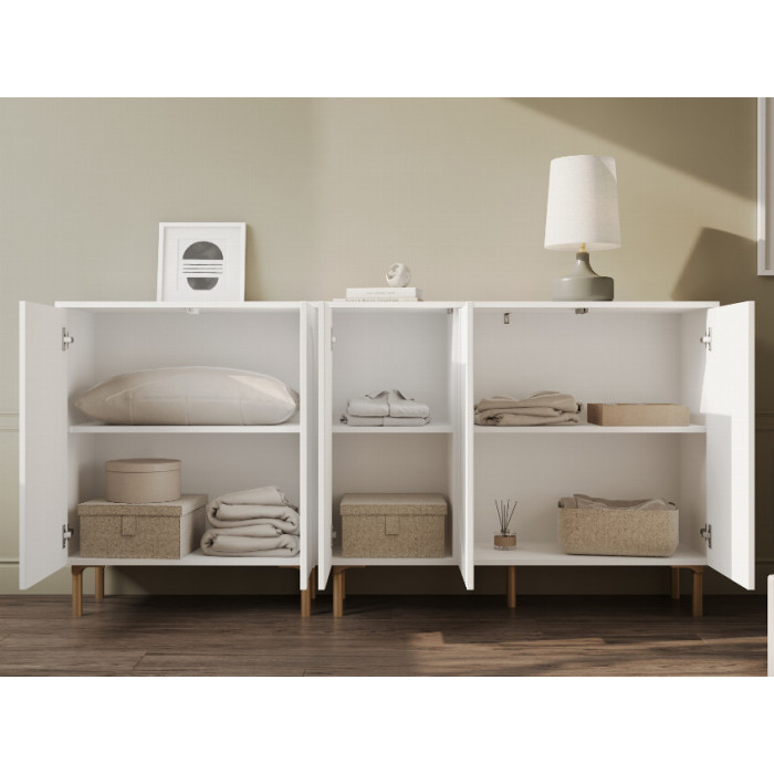 Набор комодов Ванесса Комби поможет создать атмосферу комфорта и гармонии, украсив гостиную, спальню или прихожую. Гладкие фасады с плавными линиями фрезеровки придают мебели утонченный вид. Просторные секции с полкой позволяют удобно хранить книги, посуду, одежду и аксессуары. Высокие ножки добавляют обстановке визуальной легкости. Отсутствие внешней фурнитуры поддерживает минималистичный облик, а благодаря механизму «push-to-open» дверцы открываются легким нажатием.